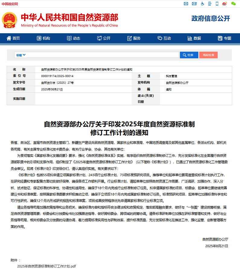 2025 年 8 月,自然资源部办公厅印发 2025 年度自然资源标准制修订工作计划的重要通知,由新联超导联合中国地质调查局自然资源综合调查指挥中心、中国科学院上海微系统与信息技术研究所、中国科学院地质与地球物理研究所、紫金矿业集团股份有限公司共同起草的《地面电性源超导瞬变电磁法技术规程》(以下简称 “《规程》”),凭借扎实的技术支撑与广泛的实际应用,顺利通过审批并正式启动建标工作。此次《规程》行业标准的制定,将为超导电磁勘探技术在地质勘查领域的应用提供统一规范,有助于提升勘探效率与准确性,推动行业整体技术水平的提升。